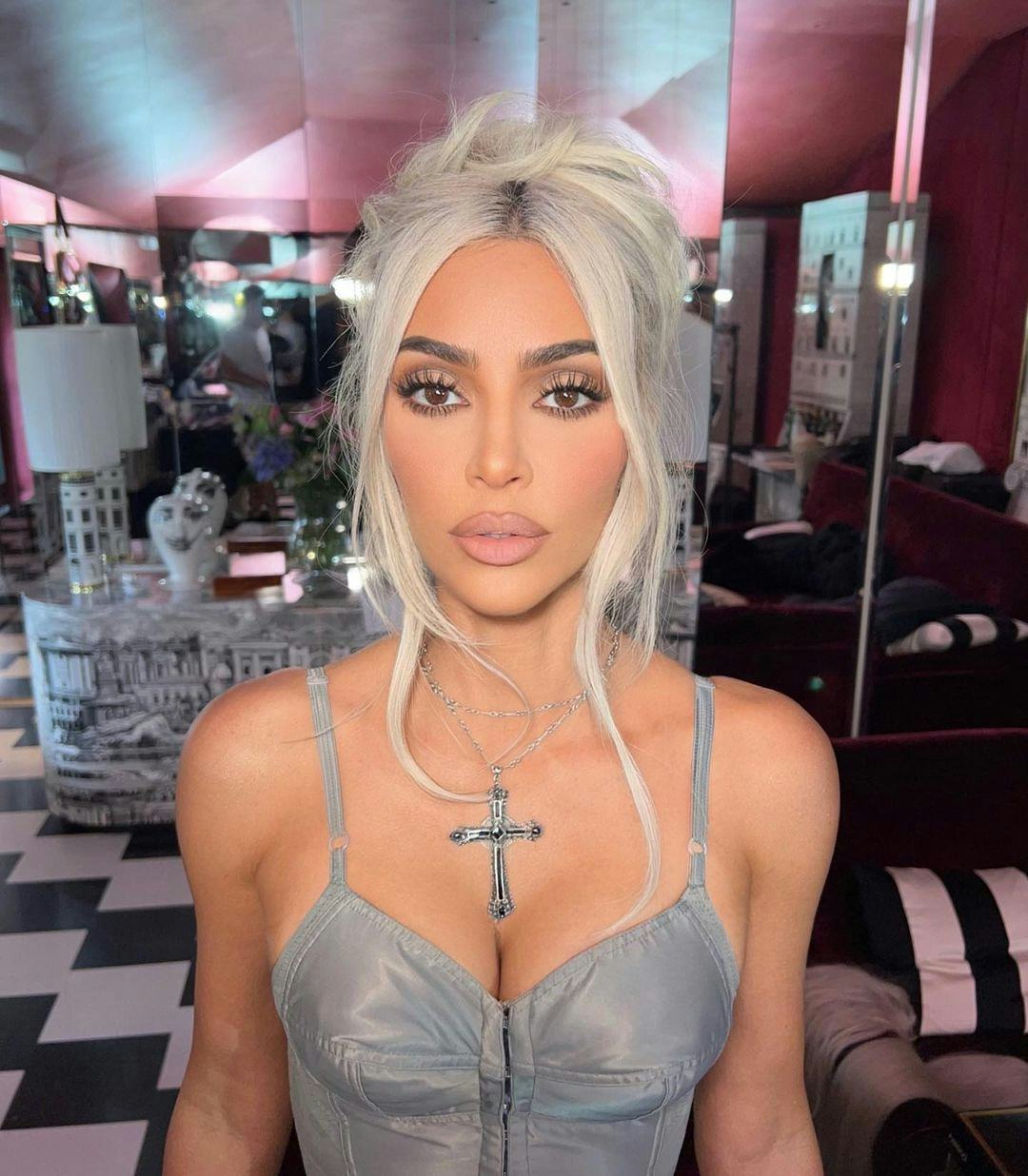 The photo while black and white clearly shows Kims flawless wedding makeup. Kim Kardashian at the 2022 Met Gala. West collection a six-piece set inspired by the makeup.